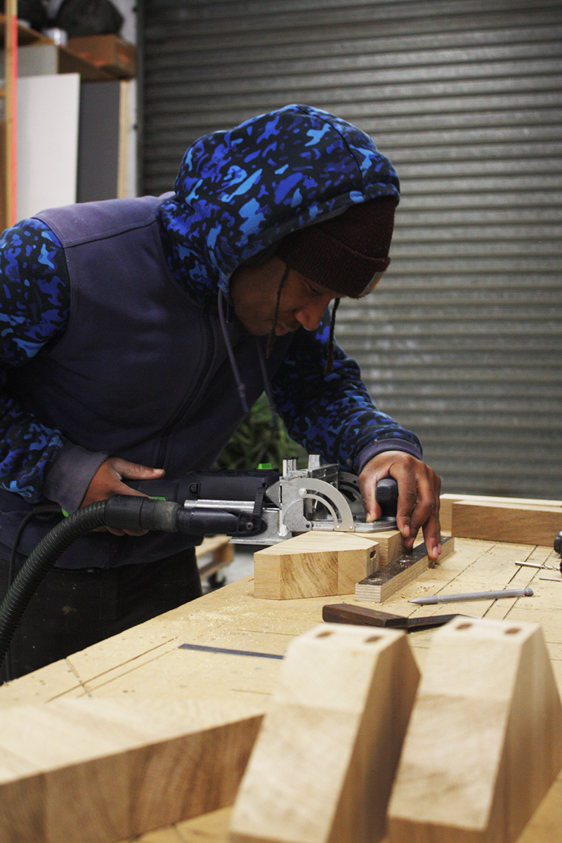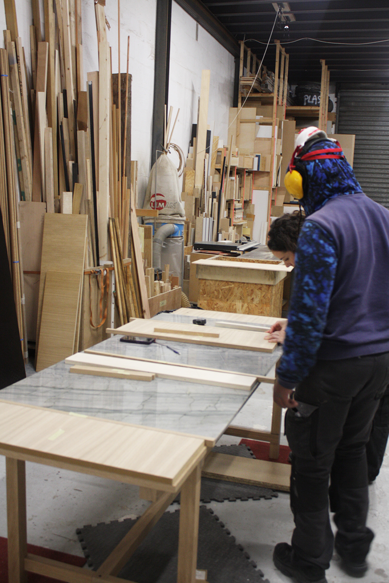 Pour ce projet de mobilier, le designer Sebastián Erazo nous a confié la fabrication d’une table et d’un paravent. La table est une déclinaison du modèle MAR dessiné il y a quelques années. Pour cette version, le plateau en pierre a été fabriqué en quartzite des Alpes.