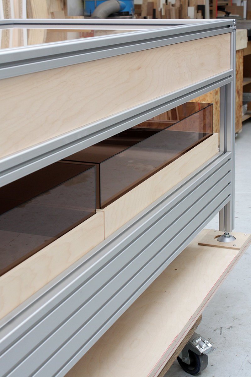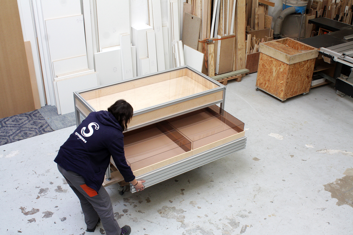 Présentoirs en PMMA fumé et aluminium extrudé