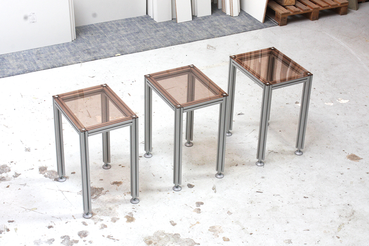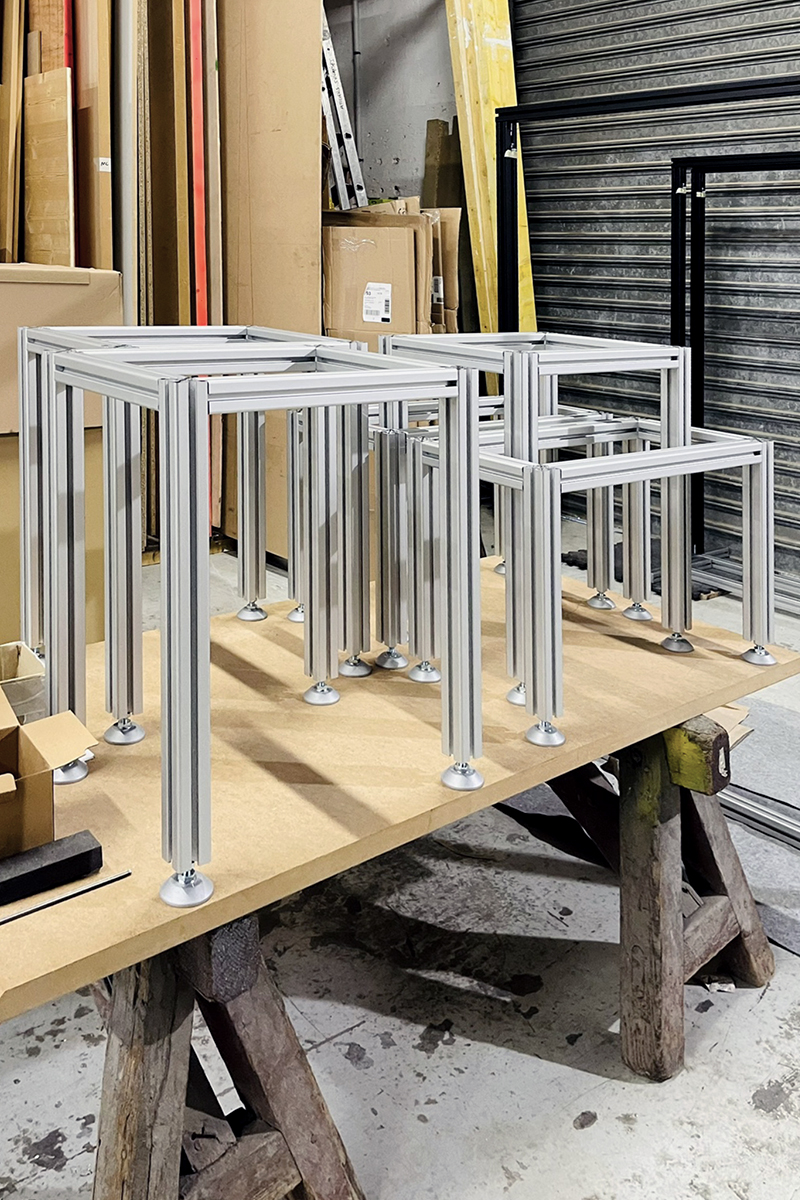 Structures des tabourets et présentoirs en profilés aluminium