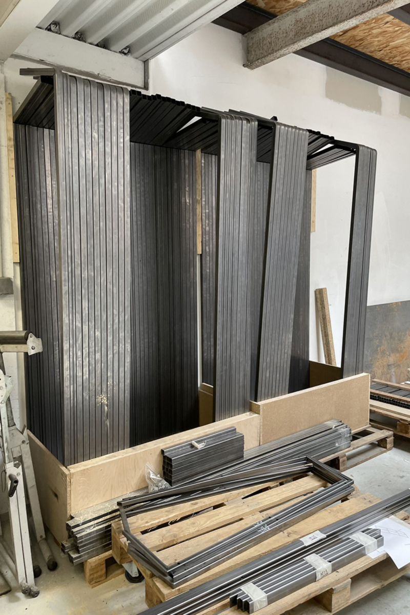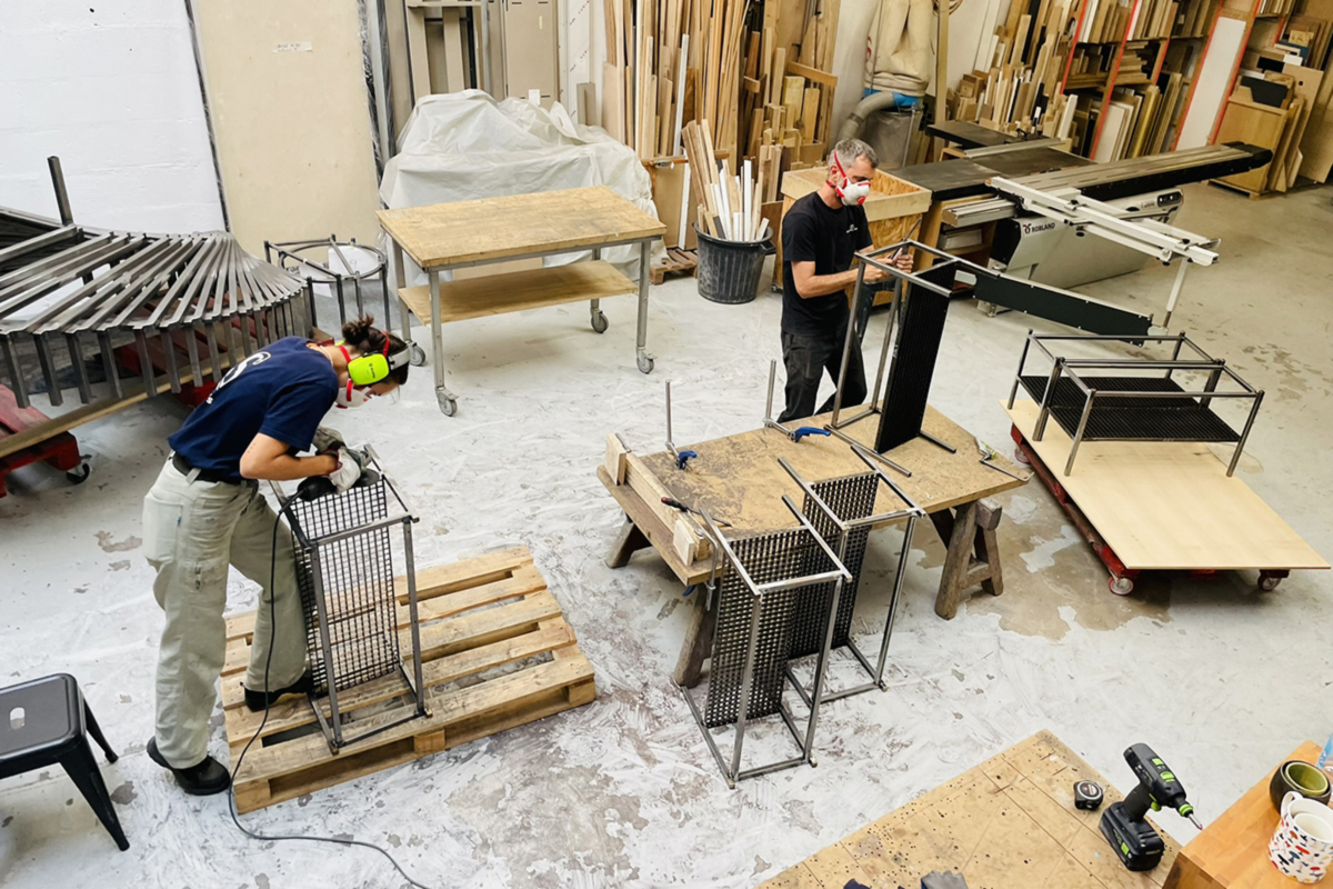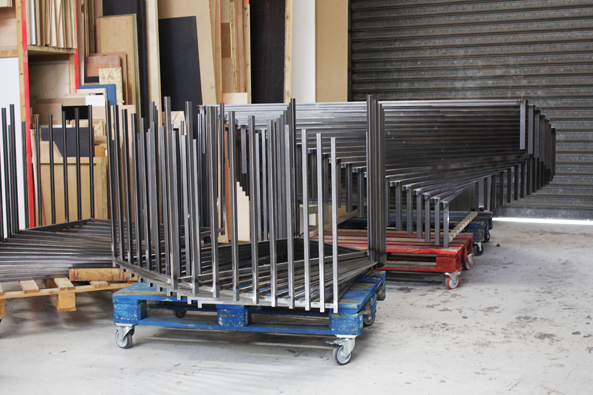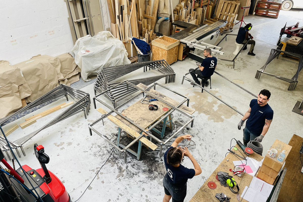 Pour nous adapter à l’échelle du projet, nous avons optimisé les phases de stockage à l’atelier et envoyé les éléments à peindre par lots pour les distribuer sur site dès réception.
