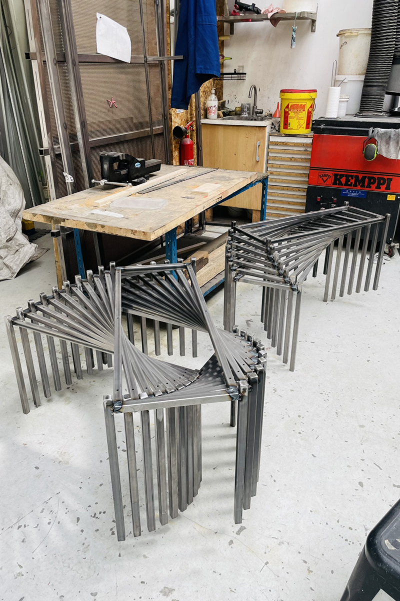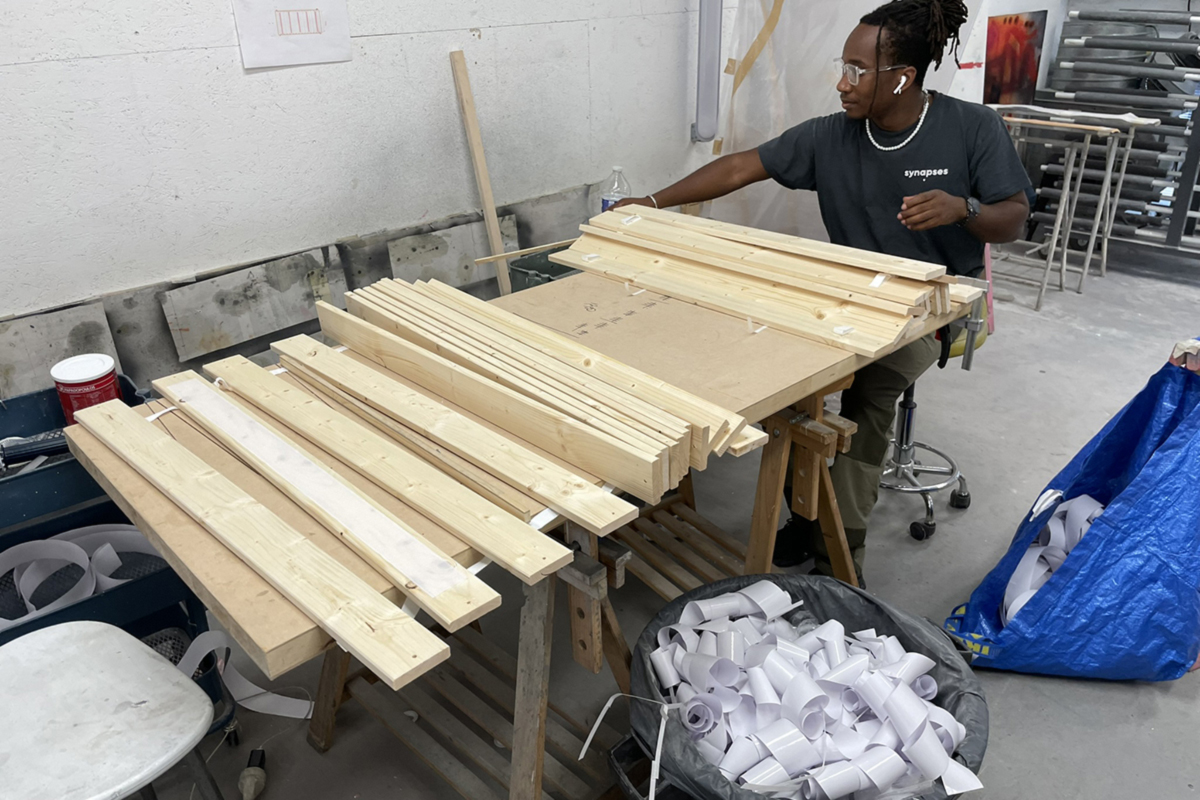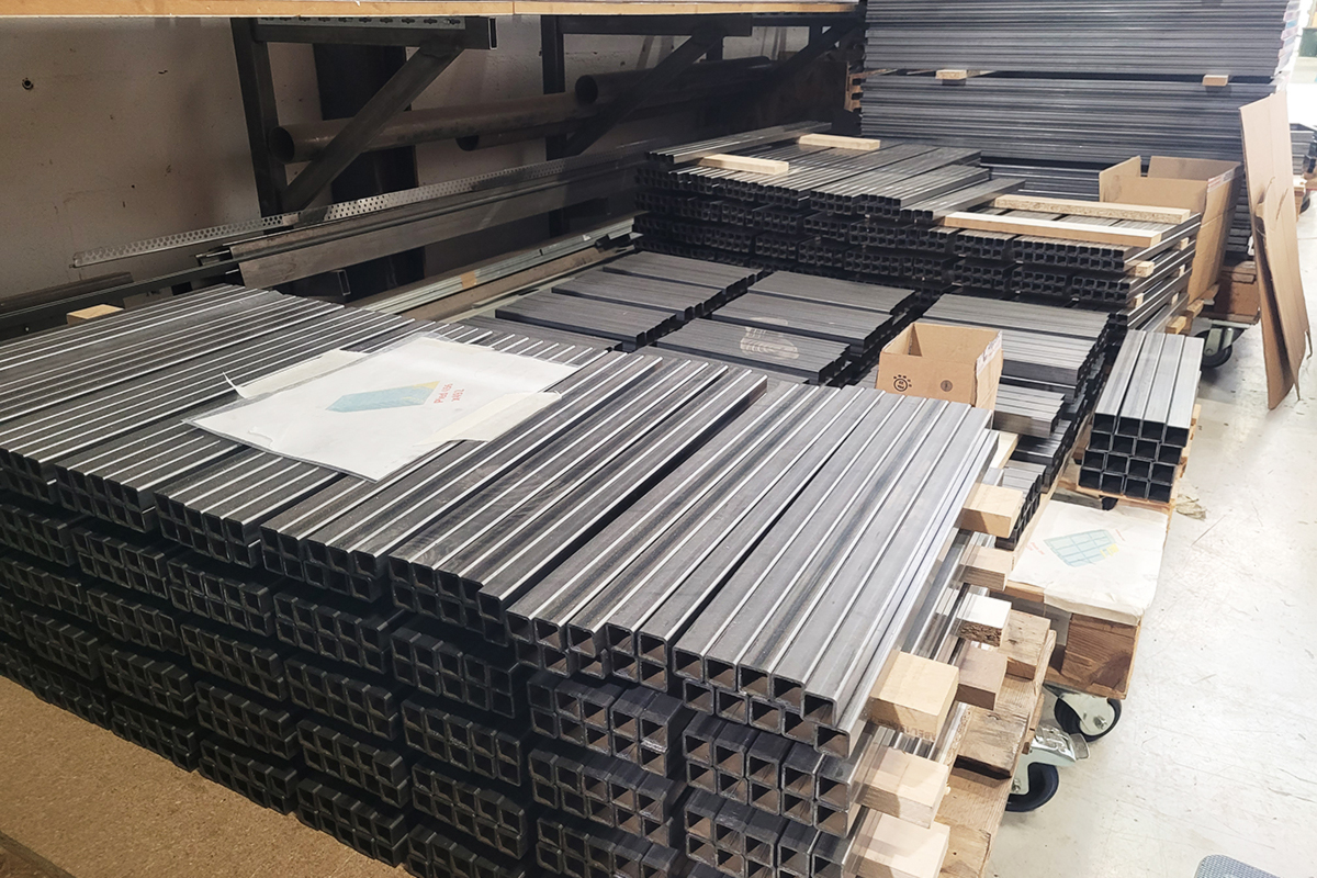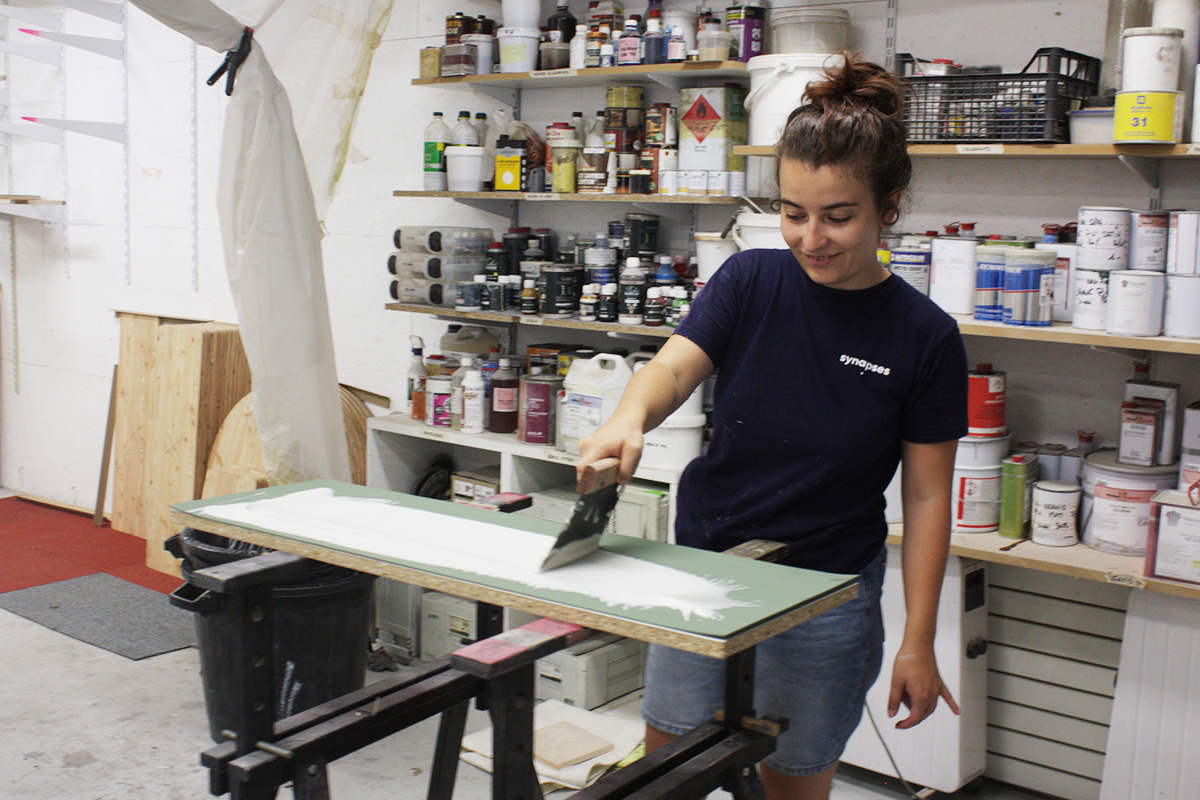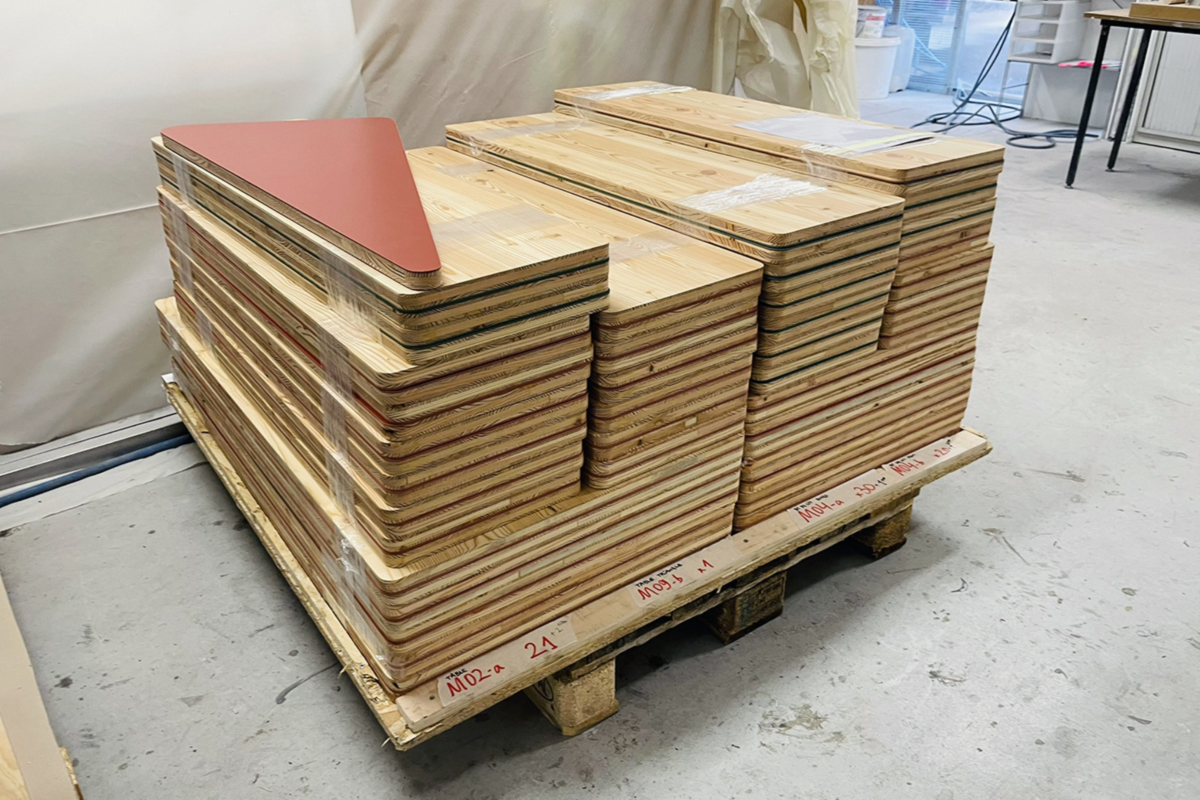 Pour nous adapter à l’échelle du projet, nous avons optimisé les phases de stockage à l’atelier et envoyé les éléments à peindre par lots pour les distribuer sur site dès réception.