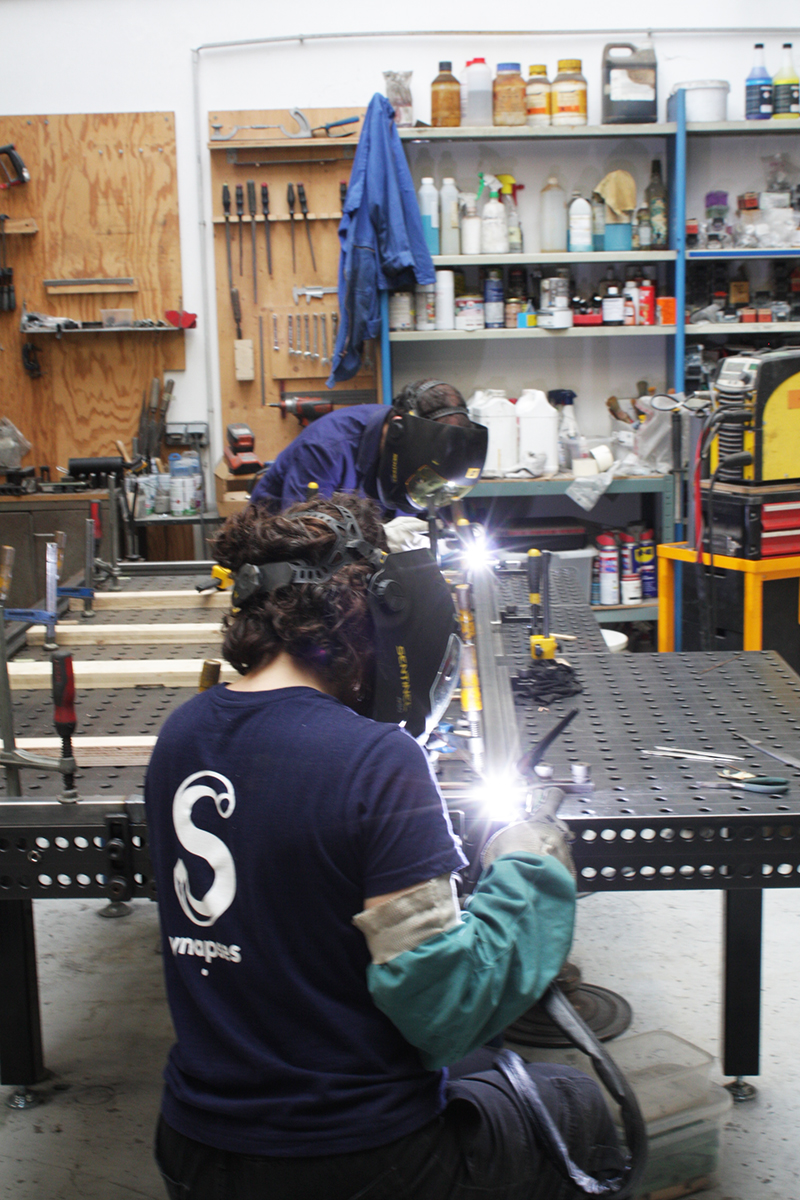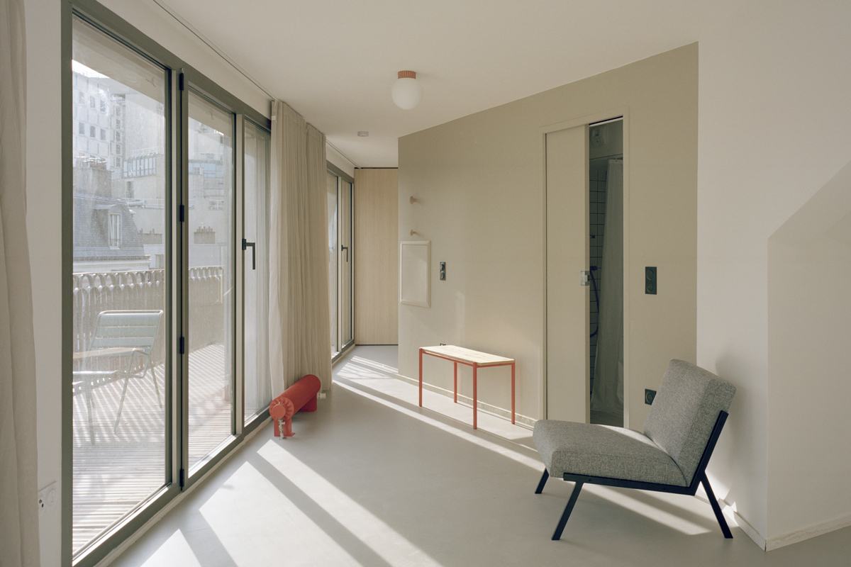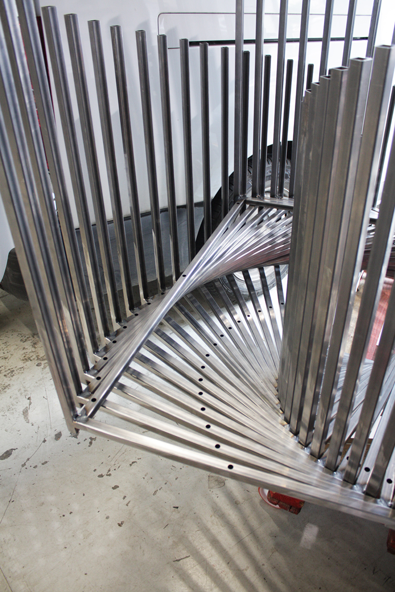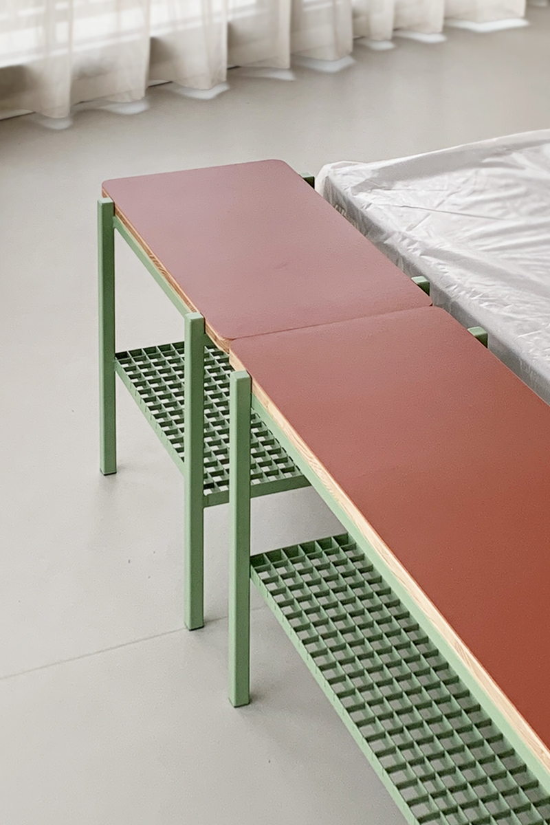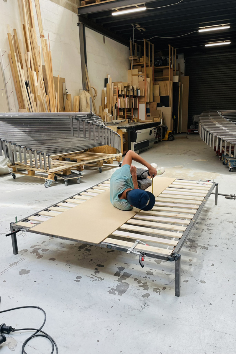 D’apparence très simple, le dessin est rigoureux et les détails sont subtils. Les châssis des lits ont été pliés à froid grâce à la découpe laser sur tube, les caillebotis ont été travaillés avec finesse pour créer une bordure arrondie et affirmer l’esthétique du projet : sobriété et subtilité.