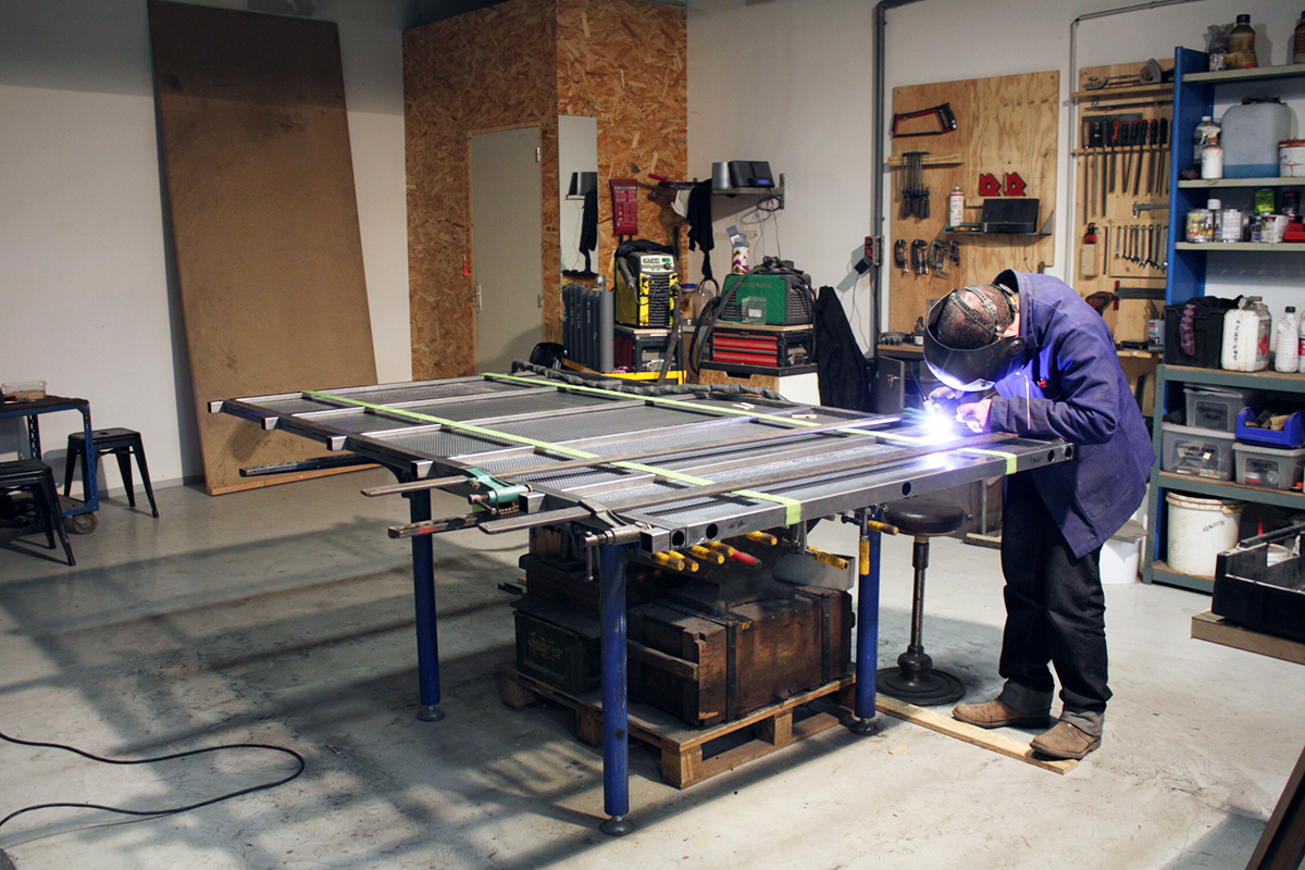 Nous avons fait appel à de la découpe laser sur tube et des tôles perforées sur mesure pour réaliser ces espaces. Les espaces lecture sont équipés de coussins en mousse moulés sur mesure également en Feek par Coat 14. Les luminaires dessinés pour le projet s'intègrent sans câblage apparent pour conserver les lignes minimales des volumes.